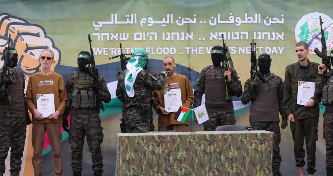 Передача изможденных израильтян Международному Красному Кресту представителями ХАМАС транслировалась в прямом телеэфире. В ней принимали участие десятки вооруженных автоматами боевиков с закрытыми лицами, на площади города Дейр-эль-Балах в центральной части сектора Газа, где происходило освобождение заложников, собрались сотни человек.