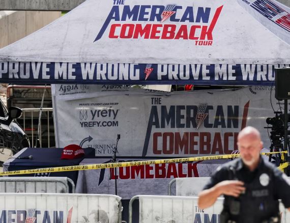 Его мероприятие проходило на открытом воздухе, и участники бросились в укрытие после выстрела.