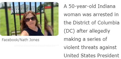 Джонс, уроженка Лафайета, штат Индиана, была обвинена в Окружном суде США в Вашингтоне, округ Колумбия, в угрозе лишения жизни, похищения или причинения телесных повреждений президенту Соединённых Штатов, а также в передаче в межгосударственной торговле сообщений, содержащих угрозы похищения любого человека или угрозы причинения вреда другому человеку.