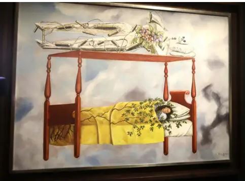 Полотно 1940 года изображает художницу спящей в кровати, которая парит среди облаков. На балдахине лежит скелет, обвязанный взрывчаткой и цветами. Картина является одной из немногих работ Кало, до сих пор находящихся в частной коллекции за пределами Мексики. На родине творчество художницы считается национальным достоянием.