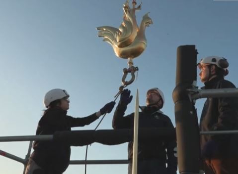 Шпиль собора Парижской Богоматери получил нового петушка. Золотая фигурка-флюгер была спроектирована архитектором Филиппом Вильневом и установлена в субботу на высоте 96 метров.