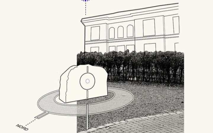 Памятник называется «Часовая золотого обручального кольца» — эта тема взята именно из саг. Скульптура представляет собой гранитный камень с коническим отверстием, заполненным ониксом. В момент, когда солнце стоит в направлении Киева (азимут 121,5°), в проеме появляется «золотое кольцо» света.