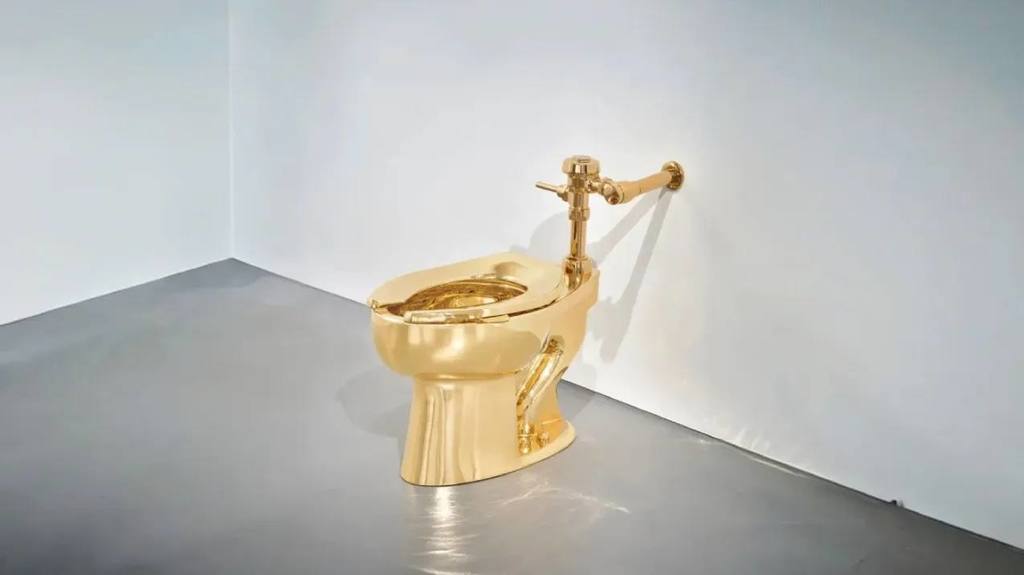 Работа современного итальянского художника Маурицио Каттелана — функционирующий унитаз, сделанный из 100 килограммов 18-каратного золота. Автор дал ему название «Америка».