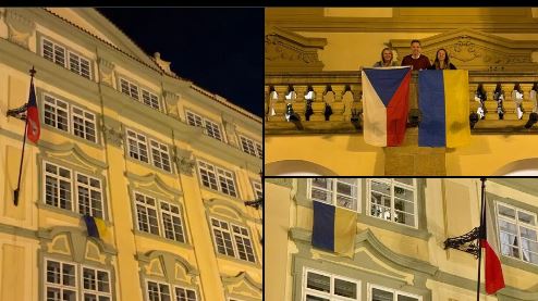 Украинский флаг был вывешен на здании парламента Чехии после начала российского вооруженного вторжения в Украину в знак солидарности с Киевом. Он развевался рядом с национальным флагом Чехии, флагом Евросоюза и Израиля.