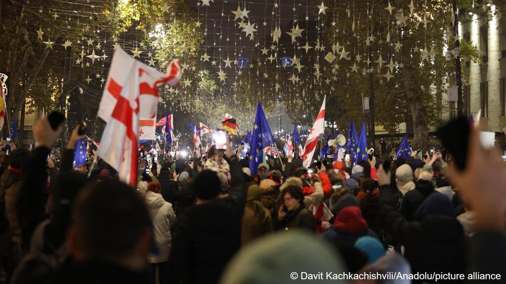 Поводом для акции стала годовщина со дня выступления премьер-министра Грузии Ираклия Кобахидзе, когда тот заявил о так называемой приостановке евроинтеграции страны до 2028 года. После этого по всей Грузии стали проводиться многолюдные акции протеста.