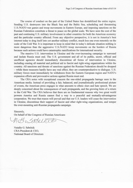 Кроме того, развивалась та же мысль МИДа о притеснении русскоязычных соотечественников в США. Ее неоднократно высказывал в прессе посол Антонов, а затем заготовленные письма публиковались членами КСОРС и рассылались по миру.
