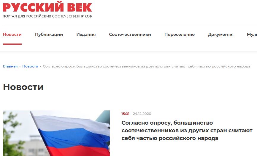 Итак, "Русский Век" сообщает: Большая часть молодых российских соотечественников из других стран считает себя частью российского народа. На вопрос об этом положительно ответили 7 из 10-и респондентов.