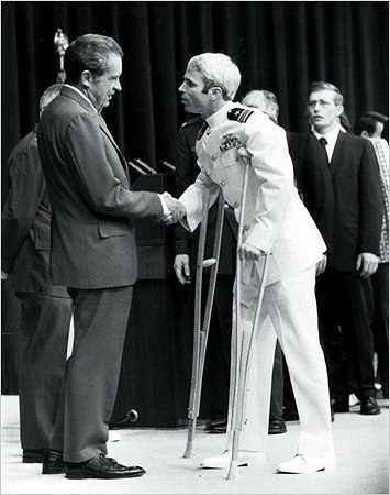 Когда Маккейн ушел в армию он был сыном высокопоставленного военного чиновника армии США. Когда Маккейн попал в плен, его отец стал главнокомандующим Тихоокеанским флотом США и командующим армией во Вьетнаме. Его сбили над озером, вытащили с переломаными костями, жесткого избивали, посадили в одиночный карцер. Именно там по горло в воде, оплеванный и униженный - он полностью поседеет, и получит прозвище "Белый Торнадо".