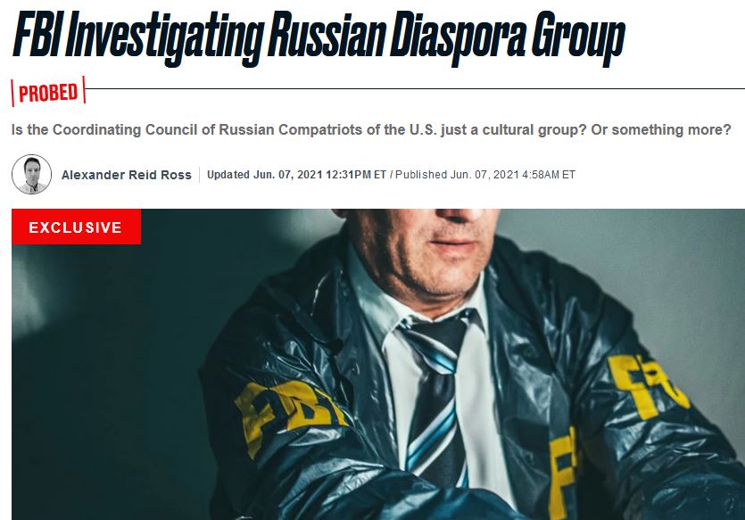 Портал The Daily Beast ранее заявил, что ФБР проводит расследование в отношении Координационного совета организаций российских соотечественников и опросило уже десятки людей, провело обыски в домах и офисах