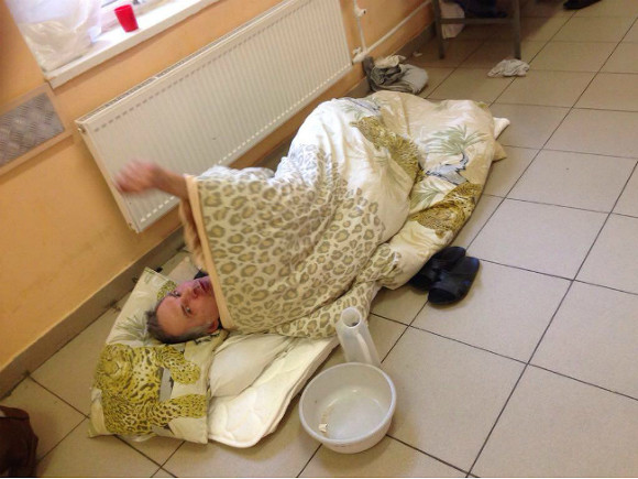UPD: На данный момент в коридоре лежат четверо больных. Часть из них разместили на топчанах. Пенсионерку в тяжелом состоянии переложили с топчана на кровать. Пациенту, который лежал на полу, после огласки нашли место в палате.
