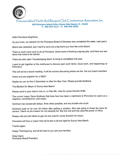 У нас есть интервью с Ларисой которое рекомендуем посмотреть чтобы больше узнать о вашем кандидате на должность мэра Sunny Isles Beach.