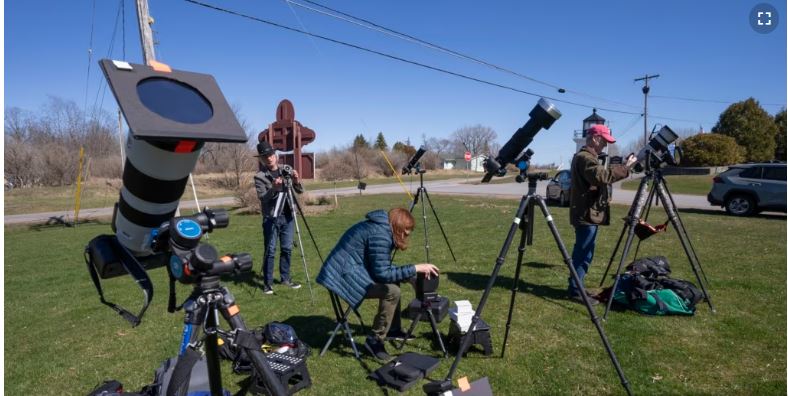 В число городов, расположенных на пути полного затмения, входили: Мазатлан, Мексика; Сан-Антонио, Остин и Даллас, Техас; Индианаполис, Индиана; Кливленд, Огайо; Эри, Пенсильвания; Ниагарский водопад, Нью-Йорк, и Ниагарский водопад, Онтарио, а также Монреаль, Квебек.