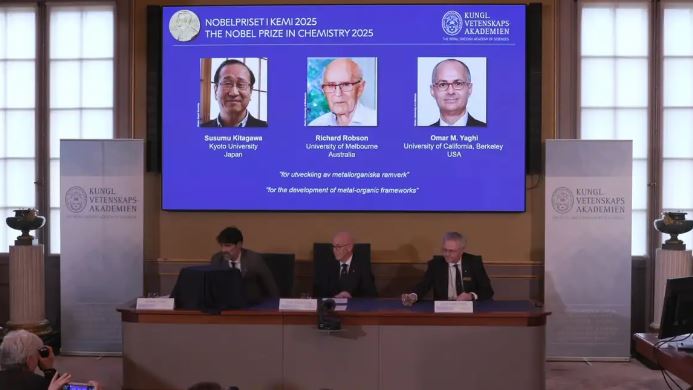 Нобелевскую премию по химии в 2025 году получили Сусуму Китагава из Университета Киото - японский химик, специализирующийся в области координационной химии, австралиец Ричард Робсон из Университета Мельбурна и американский химик иорданского происхождения, профессор химии в Калифорнийском университете в Беркли Омар Яги. Они были удостоены награды за "разработку металлоорганических каркасных структур", объявила Шведская королевская академия наук в Стокгольме в среду, 8 октября.