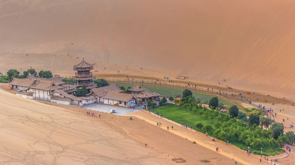 На территории Западного Китая расположен город Дуньхуан. Приблизительно на расстоянии в шесть километров от него можно наблюдать озеро в виде Полумесяца в пустыне. Озеро представляет собой умопомрачительный оазис посреди пустыни Гоби. Китайцы называют его Юэяцюань. Данное озеро, вместе с уникальным буддистским храмом, является основной достопримечательностью этой части Китая.