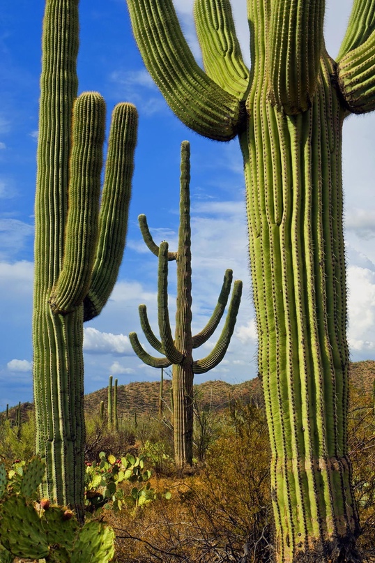 Национальный парк Сагуаро — это дом самых больших в мире кактусов, хорошо нам известных по голливудским фильмам про Дикий запад. Эти кактусы особенно эффектно выглядят на закате и очень красиво цветут.