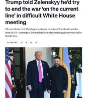 Контекст. Накануне FT сообщила (https://t.me/agentstvonews/12391), что Трамп в ходе встречи с Зеленским неоднократно повторял тезисы, которые Владимир Путин озвучил ему в четверг в телефонном разговоре. Некоторые из них противоречили его собственным недавним заявлениям о слабости России. Один из этих источников FT рассказал, что Трамп сказал Зеленскому: «Вы либо идете на сделку, либо будете уничтожены». По словам источника, Трамп заявил, что Украина «проигрывает войну», и добавил: «Если Путин этого захочет — он уничтожит вас».