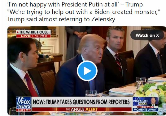 На заседании кабинета министров 7 июля Трамп осудил неспособность Путина прекратить военные действия.
