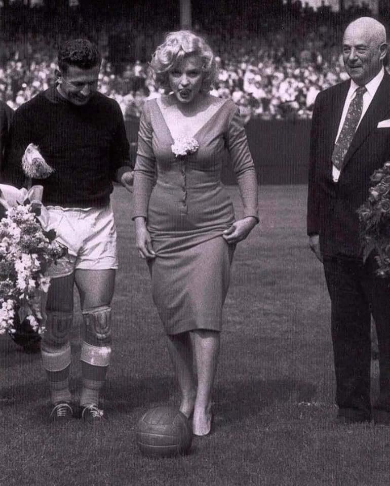 12 мая 1957 год — Мэрилин Монро открывает футбольный матч.