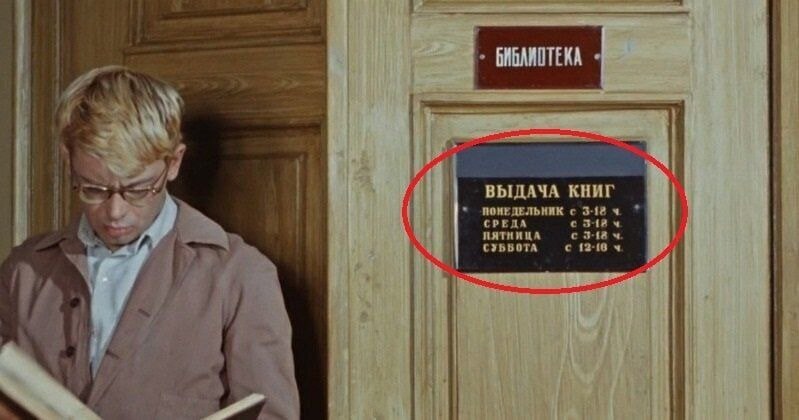Вывеска на двери библиотеки, куда заходил Шурик за книжками.
