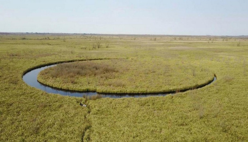 Есть в Аргентине идеально круглое озеро. Но оно, в отличие от сотен аналогичных водоёмов, уникально тем, что четыре пятых его поверхности занимает круглый остров, который всё время находится в движении. Это удивительное явление в природе. Учёные открыли для себя его только в 2003 году, хотя местные жители об острове и озере знали с давних пор.