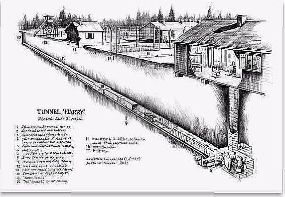 Во время второй мировой войны немцы построили специальный концлагерь Stalag Luft III для захваченных в плен летчиков союзников. В основном это были англичане и американцы. Заключенные совершили один из самых крупных побегов в истории. В рытье 4(!) тоннелей принимало участие более 250 человек. Самый длинный тоннель "Гарри" был длиной в 102 метра и проходил на глубине 8,5 метров. Это было сделано для того, чтобы немцы, использующие специальные микрофоны, не услышали звук подкопа. Также заключенные заглушали рытье подкопа спортивными занятиями и хоровым пением. Они тщательно готовились к побегу - для всех были изготовлены документы и пошита гражданская одежда. В тоннеле ходила вагонетка и были проложены вентиляционные трубы. Их сделали из молочных бидонов.