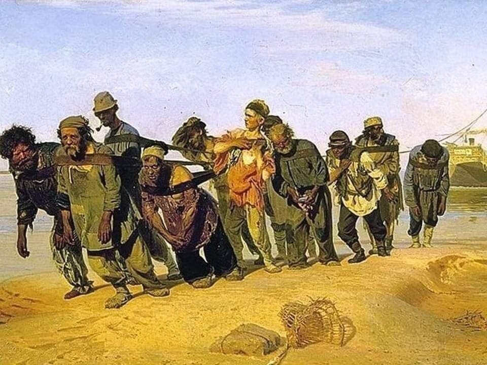 Картина Репина "Бурлаки на Волге" в советское время, да и сейчас, считалась символом угнетения рабочего люда в царской России.