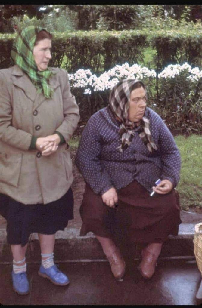 Вот две колхозных советских тётки. Все говорит о том, что ждут сельского скрипучего автобуса на остановке после удачного похода за грибами (корзина видна справа).