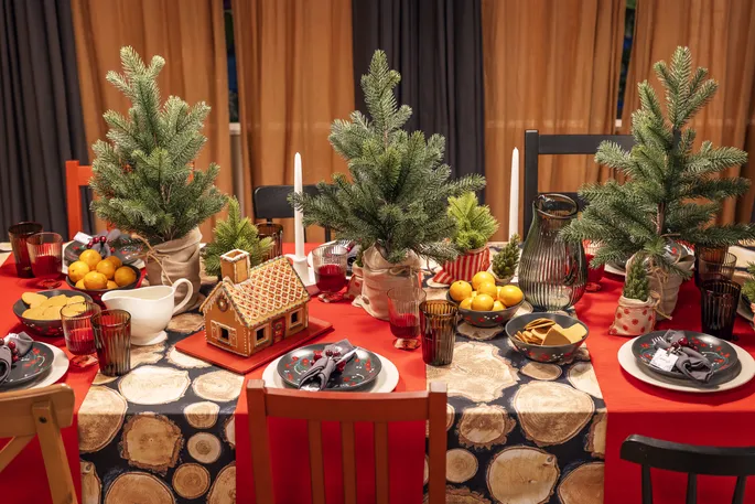 Для декора рекомендуется выбирать природные материалы: деревянные салфетницы, элементы из металла или натурального текстиля. Металлические предметы в сервировке добавят блеска и подчеркнут символику года.