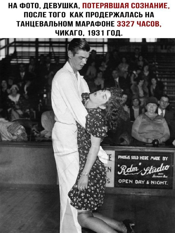 В 1920-30-е годы в США были популярны танцевальные марафоны. В начале эти марафоны были просто развлекательным мероприятием, но во время Великой Депрессии они стали способом заработка для участников. Время марафонов составляло недели и месяцы, и участникам нужно было танцевать круглосуточно.