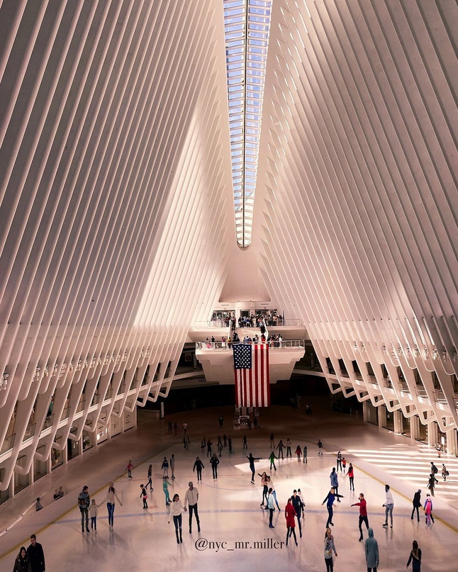 В Нью-Йорке с огромной скоростью открываются новые катки. Этой зимой впервые в истории можно будет покататься на коньках в довольно знаковом месте – торговом комплексе Oculus, расположенном внутри Всемирного торгового центра, как сообщает Time Out.