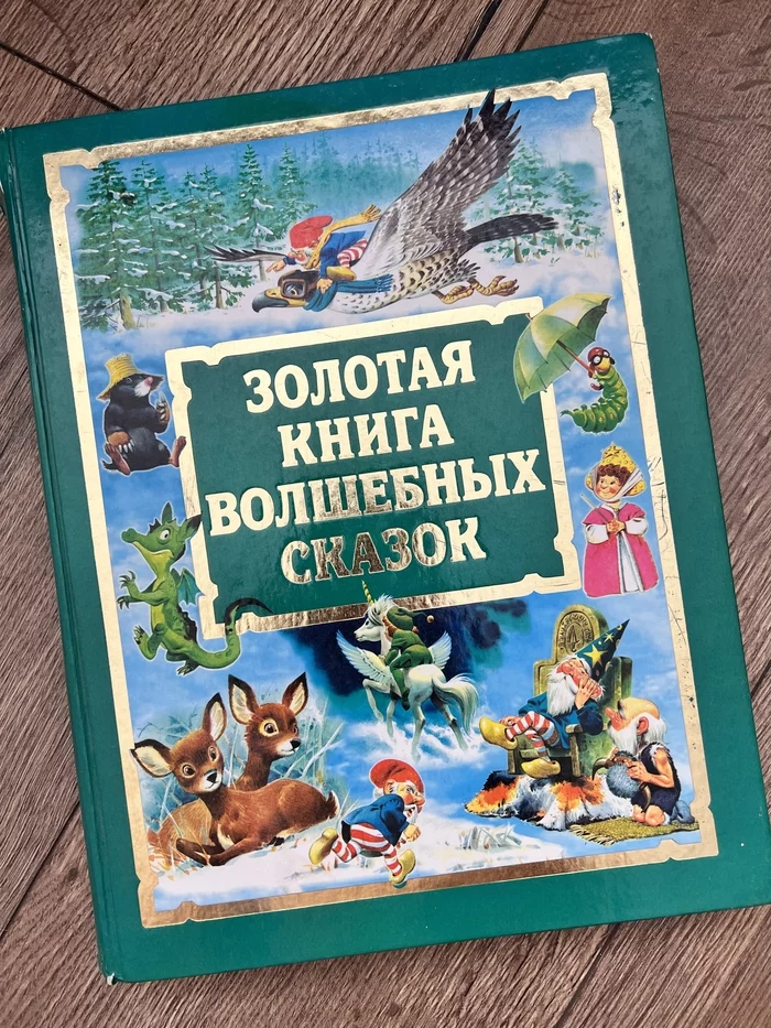 Это не типичный сборник народных сказок, как можно подумать. Это сборник за авторством Тони Вульфа. Сейчас, кажется, таким образом уже не продается, только отдельными частями, но я рекомендую поискать именно такую, либо покупать сразу все главы. Потому что книга сделана как «сериал», главы связаны друг с другом и события разворачиваются последовательно. Сами рассказы коротенькие, на пару страниц, но главное сокровище, помимо интересных рассказов - это чудесны картинки. Как я любила их рассматривать и пыталась срисовать! Да и сейчас с удовольствием пролистываю. Договорились с мамой, что в день буду читать хотябы один рассказ. И неделю я так и делала. Пока в какой то момент, поняла , что мне интересно узнать что там дальше и прочла 3 за раз. А потом за неделю дочитала разом всю книгу.