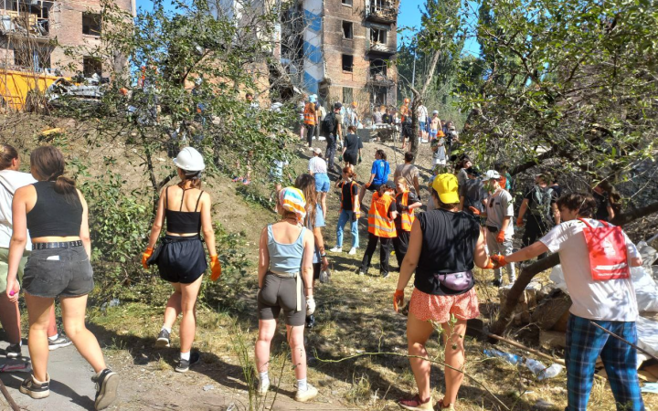 — Ще вчора туди, саме до зруйнованого під’їзду, пропускали цивільних, наші теж там працювали разом з рятувальниками. Та роботи позаду будинку вистачає і сьогодні, — розповідає Микита, 22-річний студент, який допомагає вже другий день.